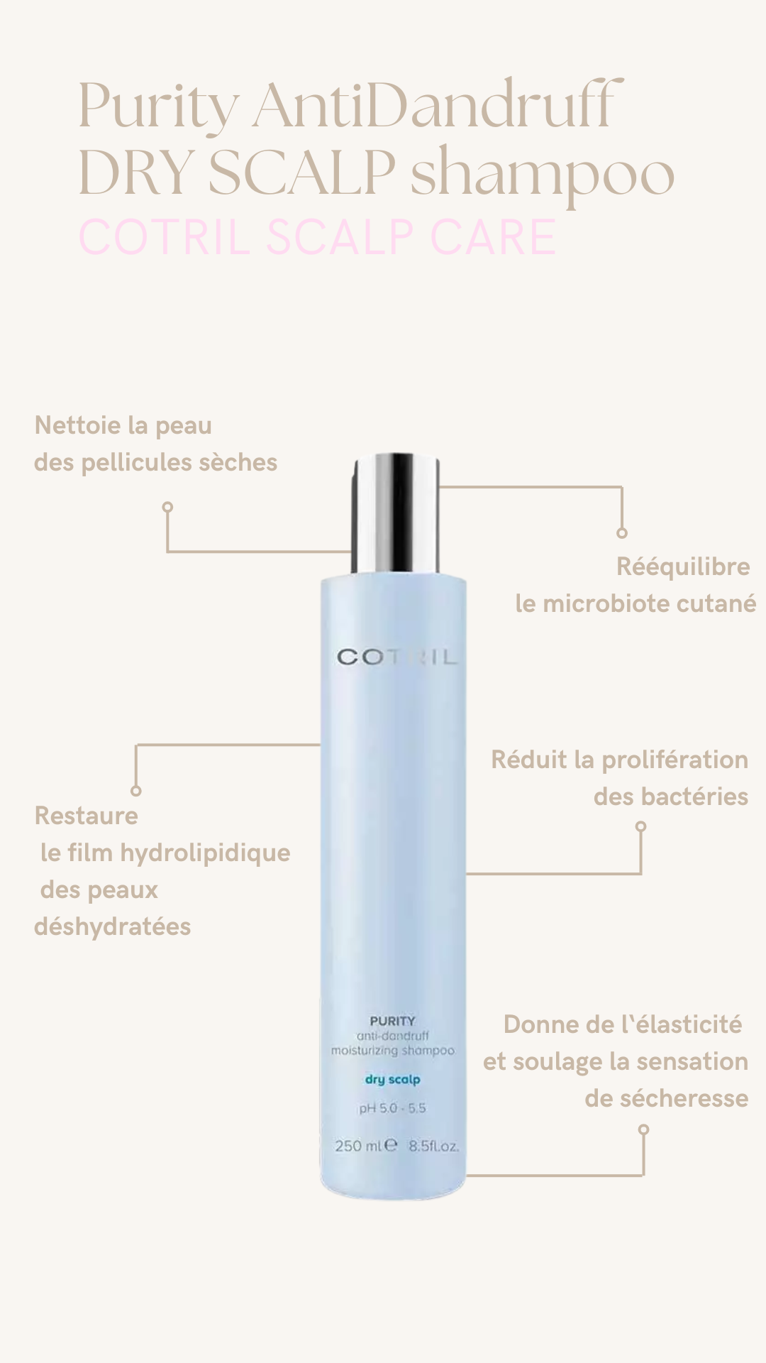 Prenez soin de votre cuir chevelu avec ce shampoing bivalent spécialement conçu pour les pellicules sèches.